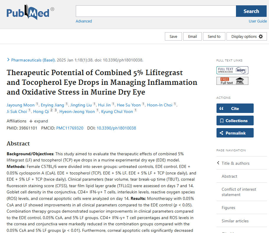 Therapeutic Potential of Combined 5% Lifitegrast and Tocopherol Eye Drops in Managing Inflammation a