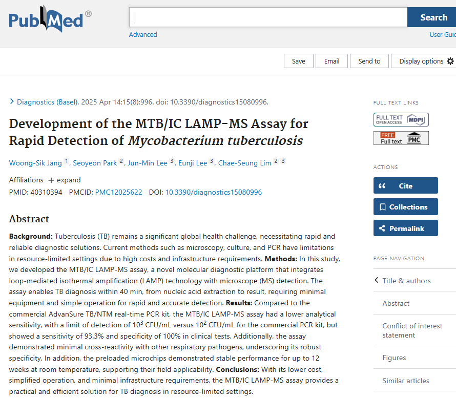 Development of the MTB/IC LAMP-MS Assay for Rapid Detection of Mycobacterium tuberculosis