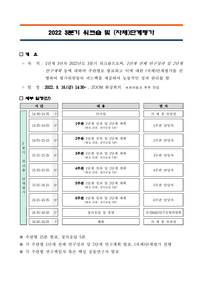고려대학교 구로병원 연구중심병원육성R&D사업 3차년도 3분기 정기 워크숍 안내(9/16)