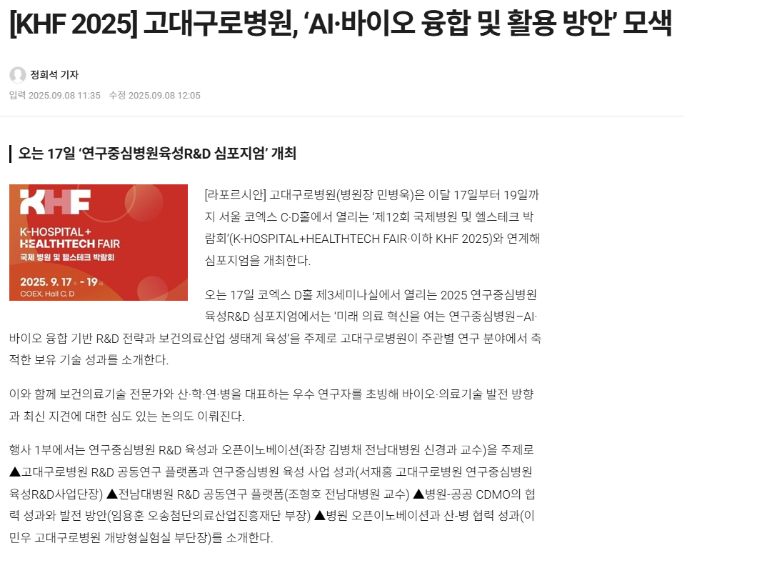 2025 ‘연구중심병원육성R&D 심포지엄’ 개최