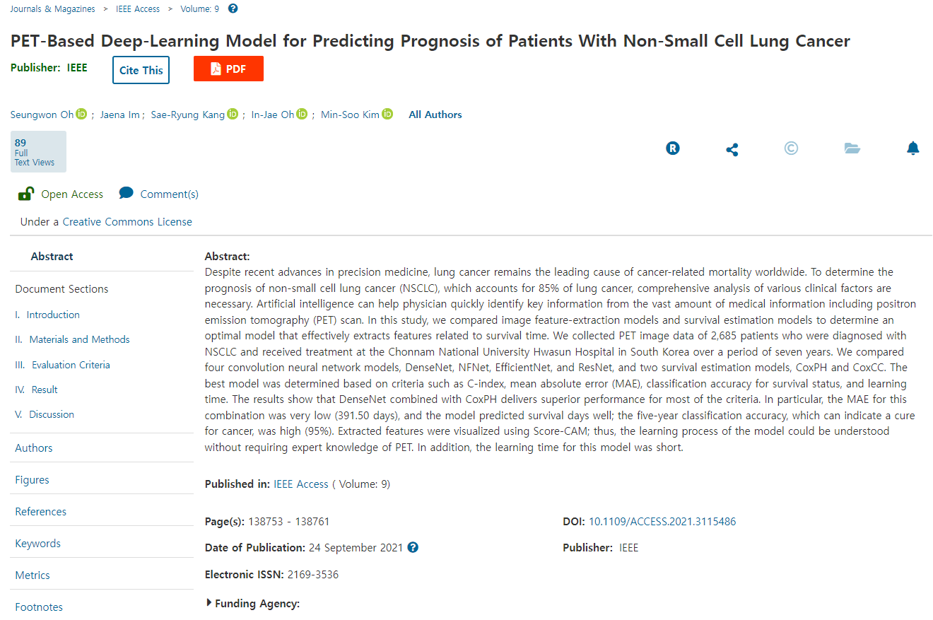 [논문] PET-Based Deep-Learning Model for Predicting Prognosis of Patients With Non-Small Cell Lu