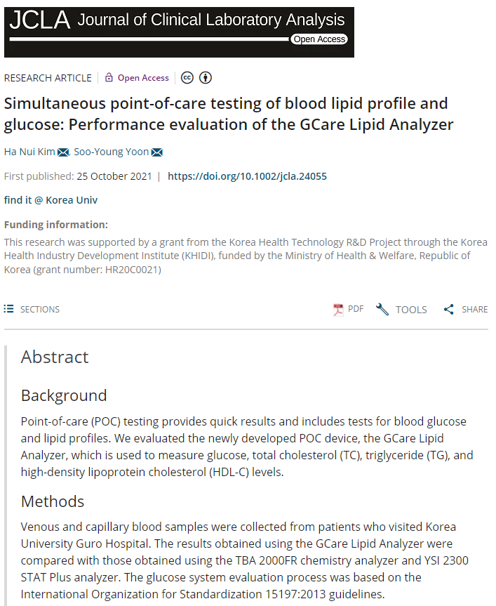 [논문] Simultaneous point‐of‐care testing of blood lipid profile and glucose: Performance evalua