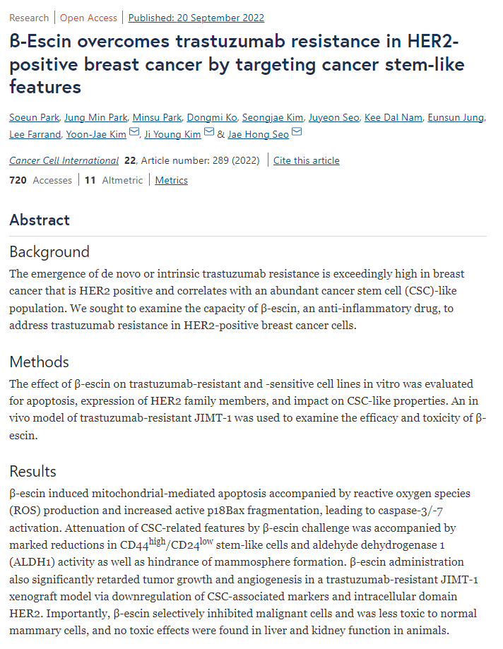 β-Escin overcomes trastuzumab resistance in HER2-positive breast cancer by targeting cancer stem-lik