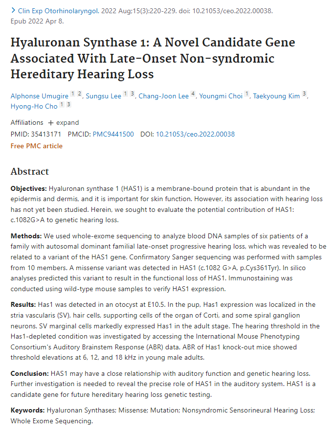 Hyaluronan Synthase 1: A Novel Candidate Gene Associated With Late-Onset Non-syndromic Hereditary He