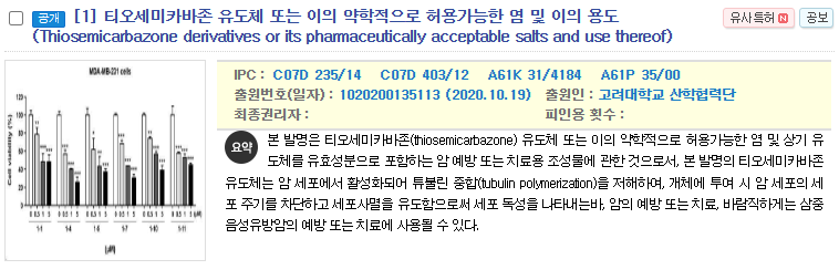 티오세미카바존 유도체 또는 이의 약학적으로 허용가능한 염 및 이의 용도