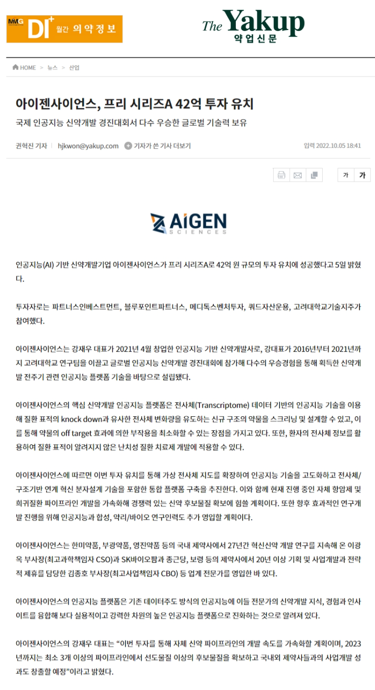 아이젠사이언스, 프리 시리즈A 42억 투자 유치