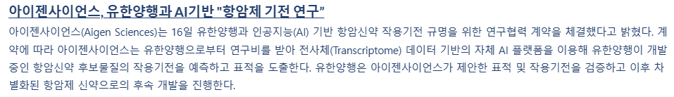 아이젠사이언스, 유한양행과 AI기반 "항암제 기전 연구” - 바이오스펙테이터 (biospectator.com)