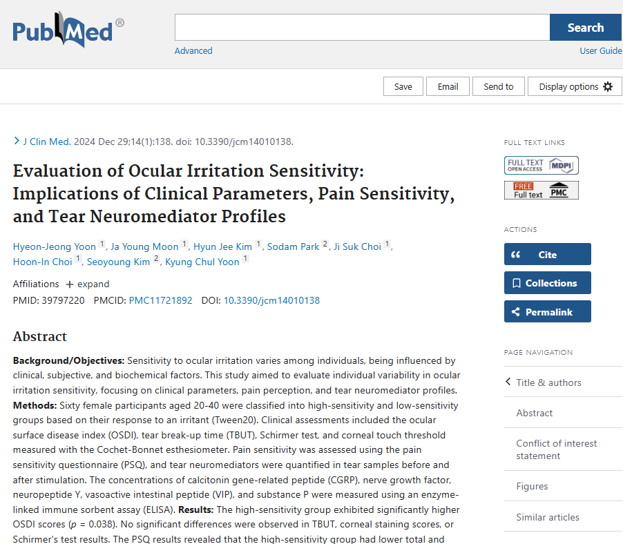 Evaluation of Ocular Irritation Sensitivity: Implications of Clinical Parameters, Pain Sensitivity,