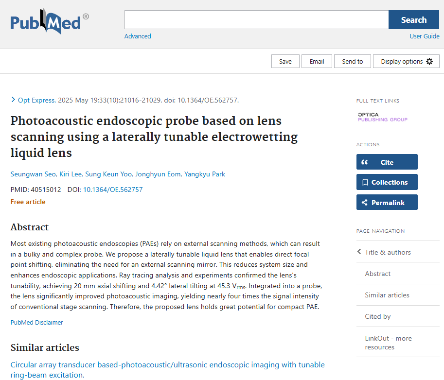 Photoacoustic endoscopic probe based on lens scanning using a laterally tunable electrowetting liqui