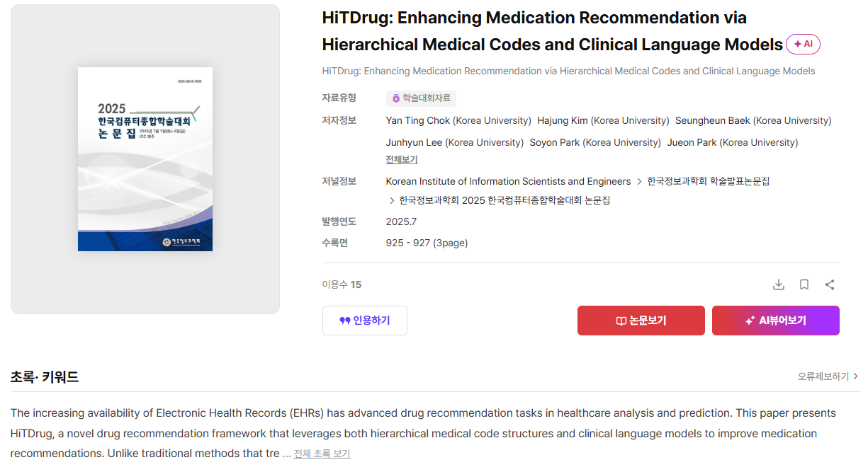 HiTDrug: 계층적 의료 코드와 임상 언어 모델을 활용한 약물 추천 시스템