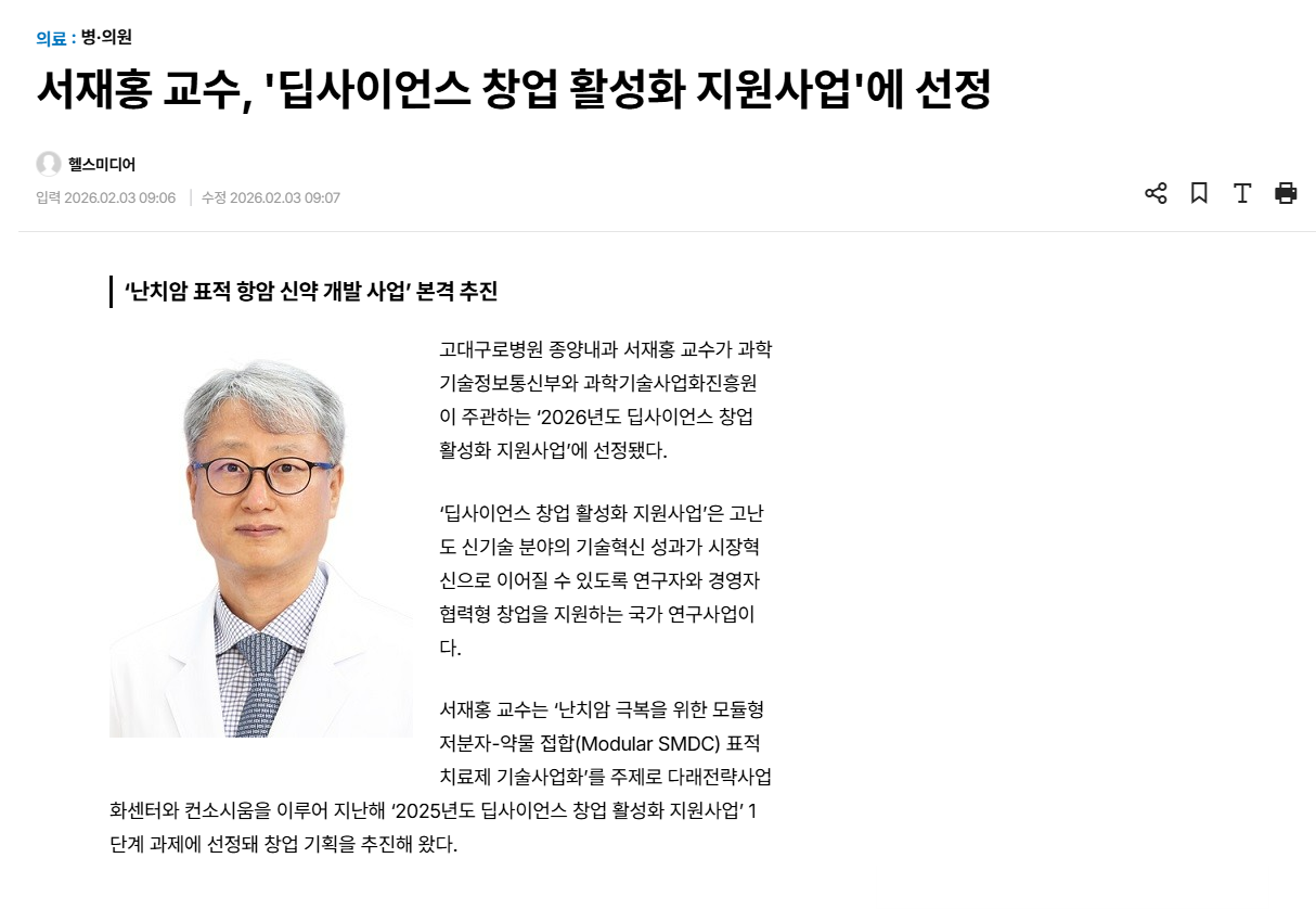 서재홍 교수, '딥사이언스 창업 활성화 지원사업'에 선정