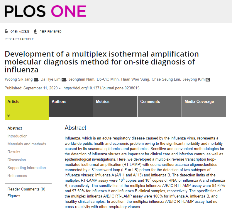[논문] Development of a multiplex isothermal amplification molecular diagnosis method for on-sit