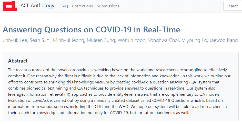 [논문] Answering Questions on COVID-19 in Real-Time