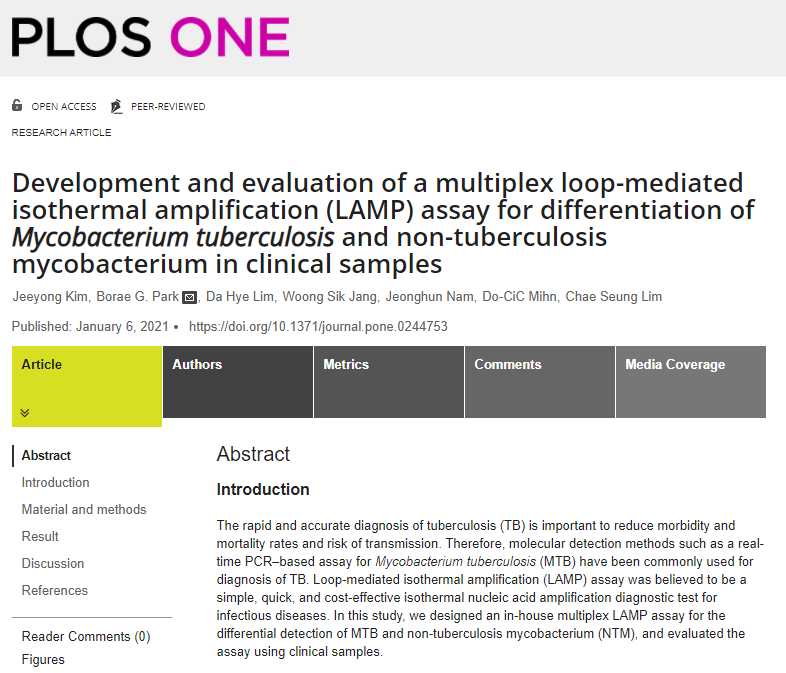 [논문] Development and evaluation of a multiplex loop-mediated isothermal amplification (LAMP) as