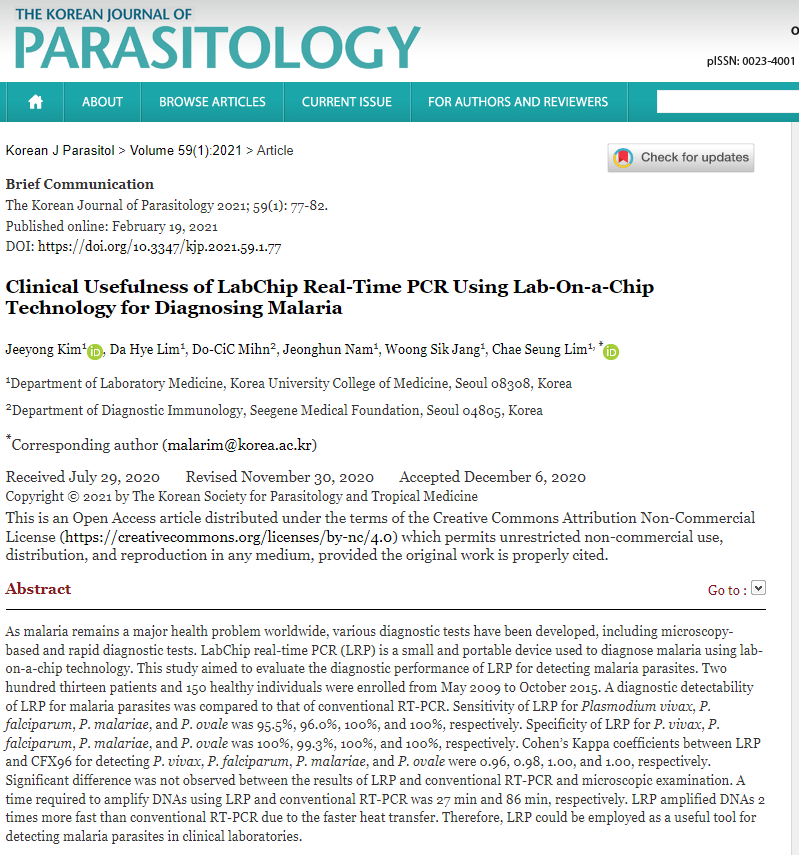 [논문] Clinical Usefulness of LabChip Real-time PCR using Lab-On-a-Chip Technology for Diagnosin
