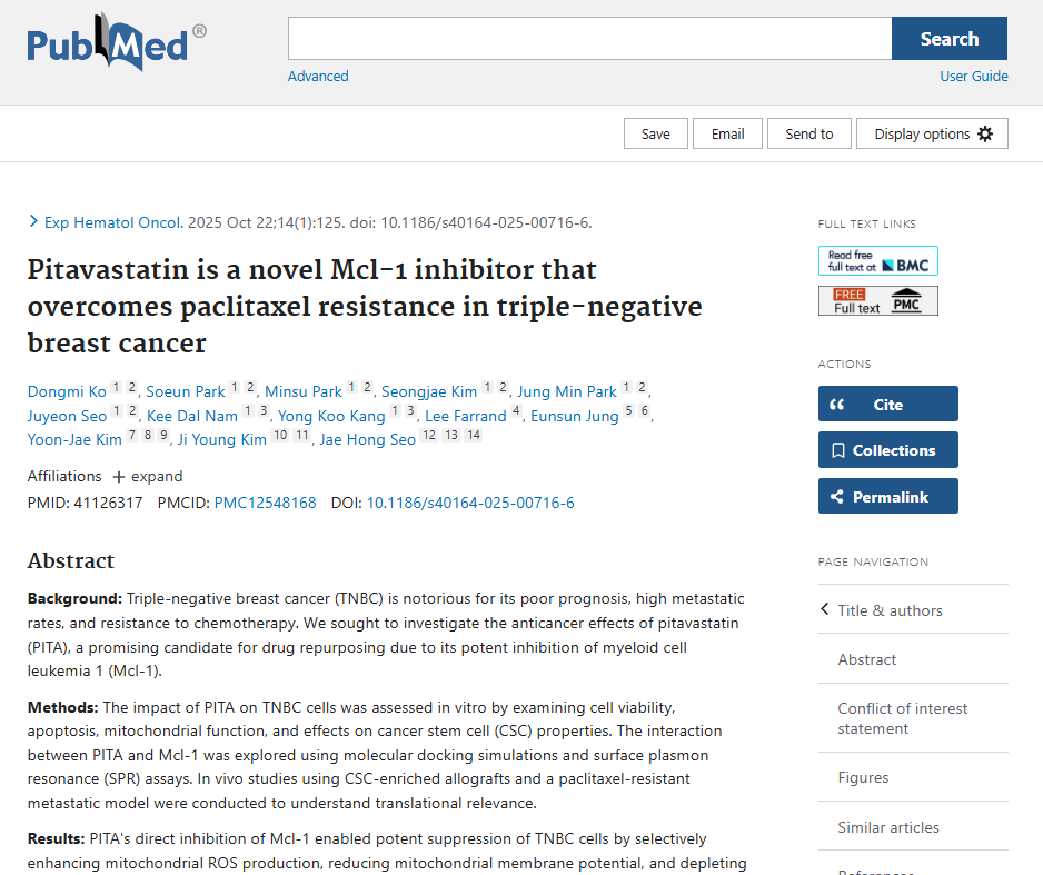 Pitavastatin is a Novel Mcl-1 Inhibitor that Overcomes Paclitaxel Resistance in TNBC